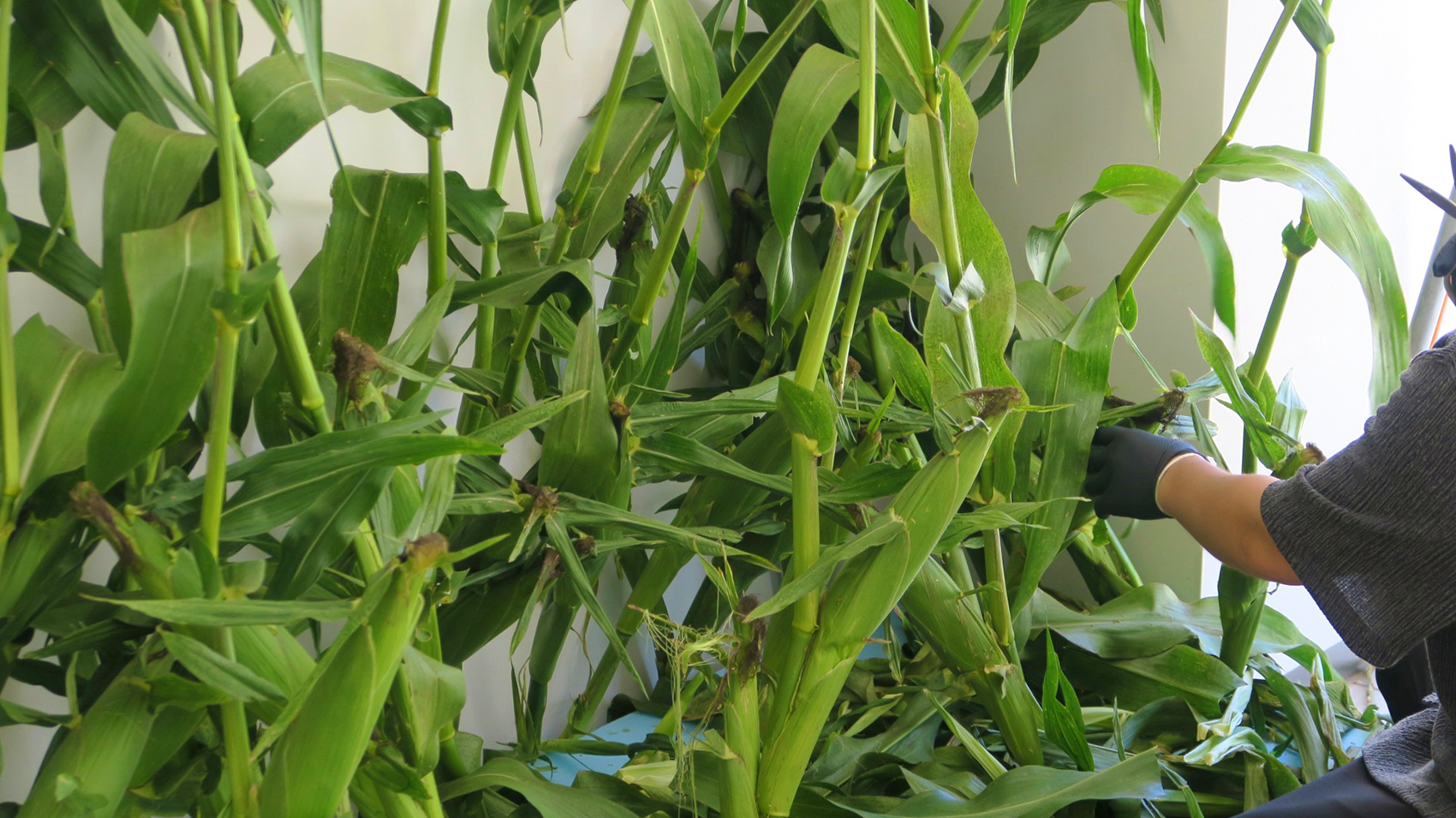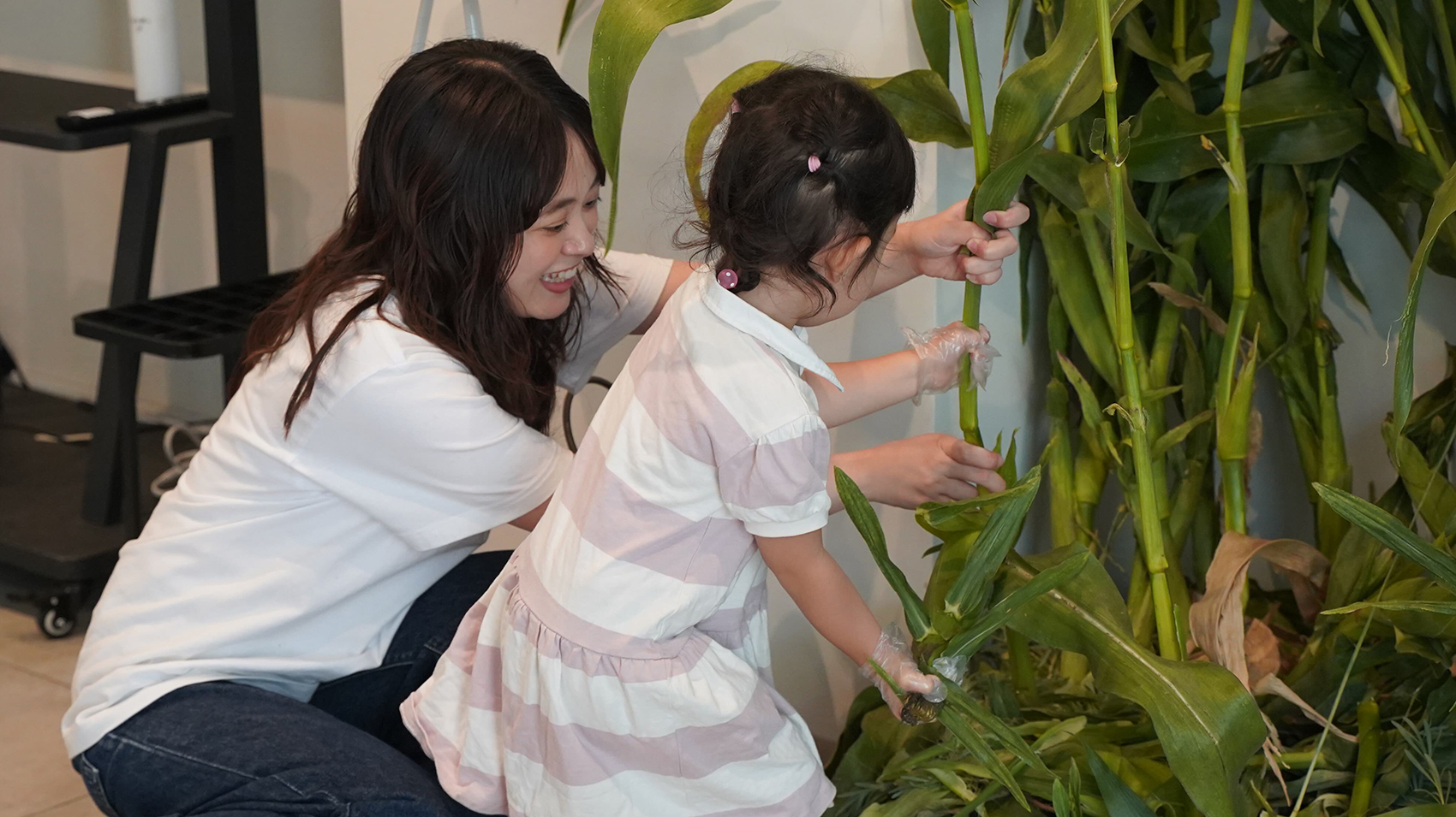 「もぎり体験」の当日、編集部がオープン前にお店を訪ねると、『onestop』チームが手際良く“とうもろこし畑”を作り上げているところでした。台風の影響を受けながらも、イベントを楽しみにしてくれるお客さんのために現地の体験を届けようと尽力するみなさんの姿が印象的でした。
