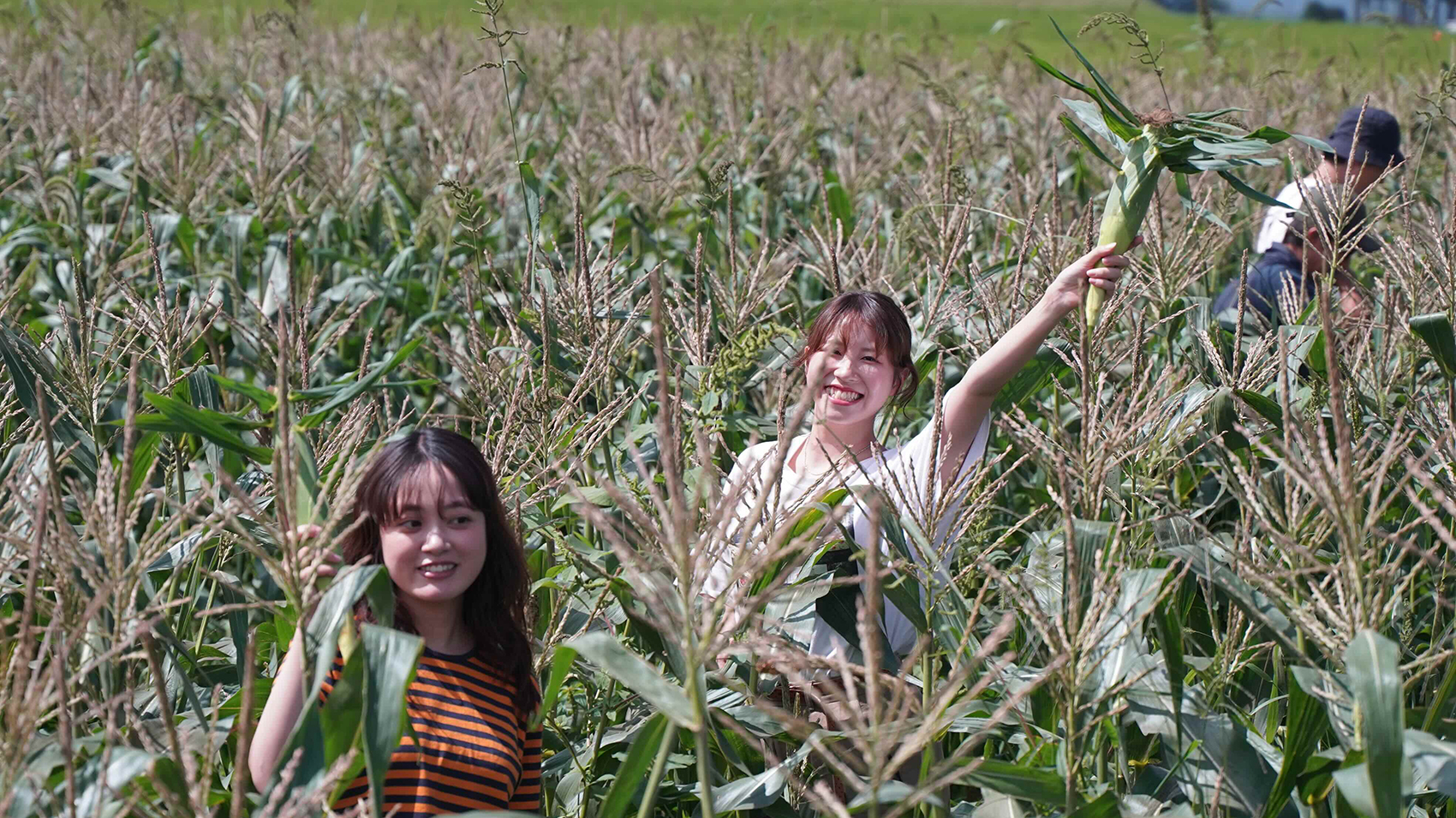 「一番大きいのを見つけて獲ろうよ!」と株の間をかき分けて奥の一番大きなとうもろこしを見つける男の子や、一本の生とうもろこしにかぶりつく子どもたちの姿に、周りの大人たちもほっこりした表情で見守っていて、笑顔があふれる現場でした!