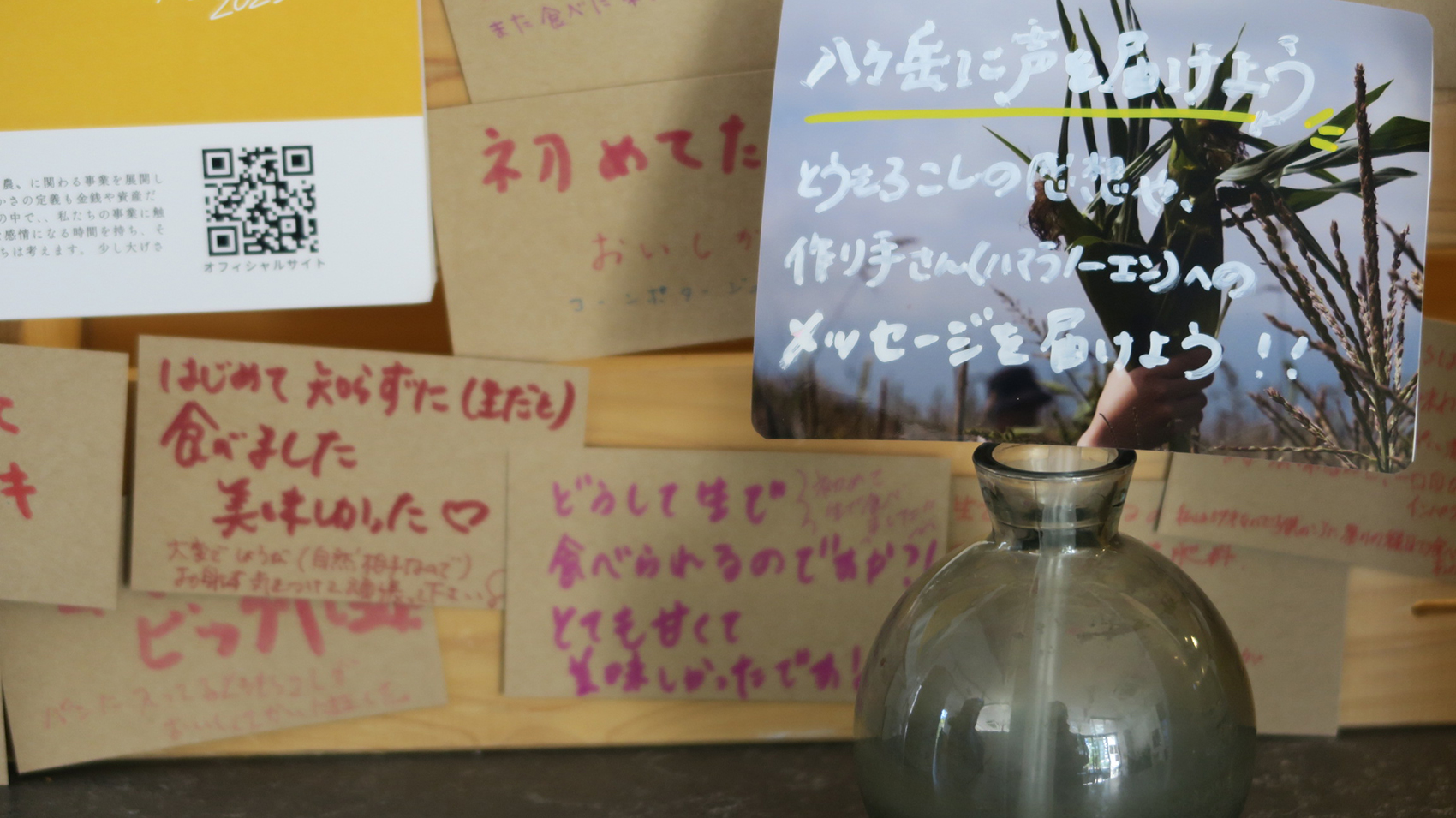 集まったお客さまの声(メッセージカード)は、後日、八ヶ岳の「ハマラノーエン」へ届けられる予定です。