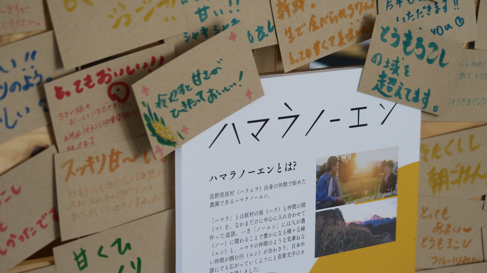 POPUP期間中、全店舗で新鮮な「八ヶ岳生とうもろこし」を試食していただいたお客さまから、感想やハマラノーエンへのメッセージが数多く寄せられました。
