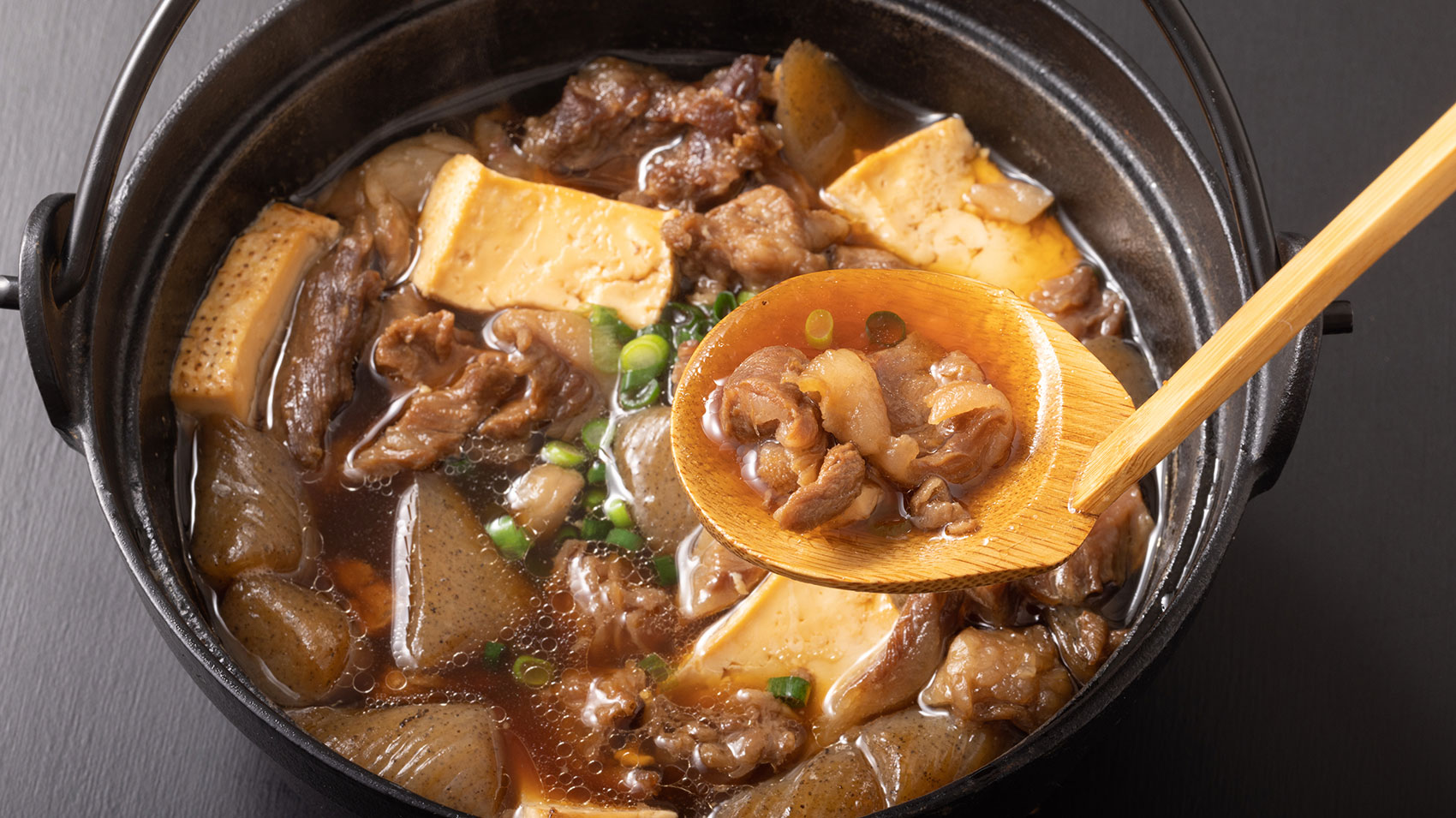 こんにゃくを合わせるのは、ボリュームを出すためと、食感の対比を楽しむための工夫だと言われています。牛すじのとろける旨みとこんにゃくの歯ごたえが調和し、いつしか「下町のごちそう」と呼ばれるようになりました。