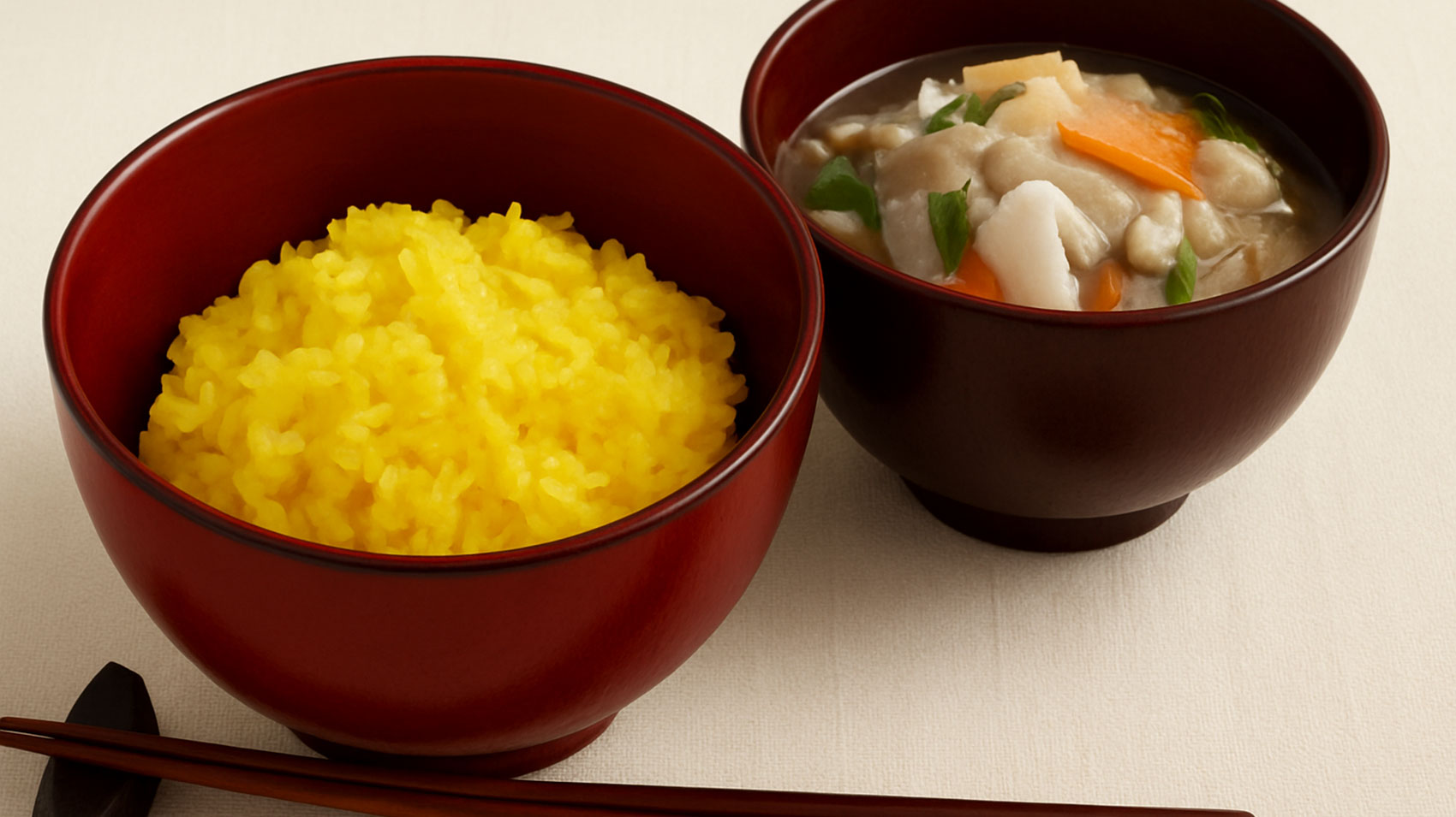どちらも「めでたさ」を表しているけれど、その印象はずいぶん違います。黄色は太陽や豊かさを象徴する色であり、臼杵では「穏やかに祝う」ための色として、黄飯は長く親しまれてきました。口にするとほんのりと優しい香りが広がり、白身魚や野菜の滋味がふわっと溶けていく――派手さはないけど、どこか心がほっとする味わいです。